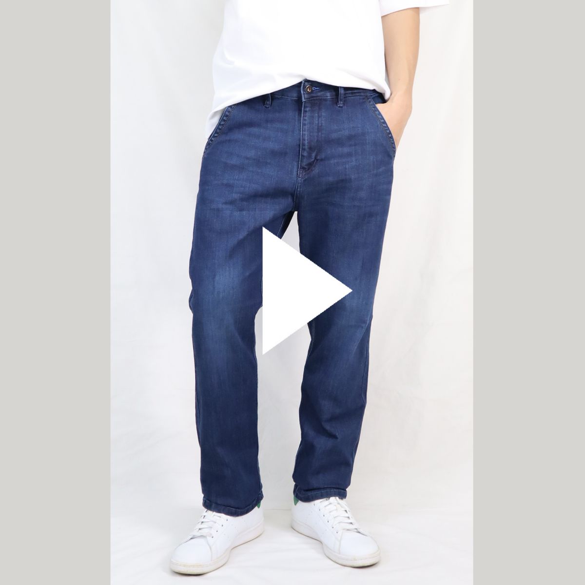 - ดีไซน์ที่ทันสมัยและเรียบง่ายไปพร้อมกัน โทนสีน้ำเงินเข้ม (Dark Wash) มีการเฟด (Washing Effect) อย่างสวยงาม ทำให้กางเกงดูมีมิติและไม่เรียบจนเกินไป