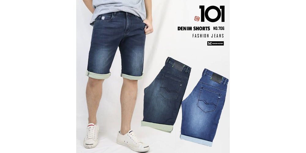 กางเกงยีนส์ขาสั้น US101 No.706 ยีนส์ขาสั้นสำหรับผู้ชายรุ่นนี้มีความยาวถึงเข่าและมีสไตล์ลำลองแบบอเมริกัน เหมาะกับทุกฤดูกาลในบ้านเรา โดดเด่นด้วยลายกระเป๋าหลังคลาสลิคแบบกางเกงยีนส์ขายาว + ป้ายหนังที่ด้านหลังให้ดูคูลมากยิ่งขึ้น ทรงเข้ารูป เอวกลางความยาวถึงเข่า ผ้าเดนิมยืด หนานุ่มกำลังดี ให้ความรู้สึกสดชื่นและสดใส ความยาวที่ไม่ยาวหรือสั้นเกินไป ใส่สบายๆ ใช้งานได้หลากหลายและจับคู่กับรองเท้าแตะหรือรองเท้าผ้าใบได้อย่างลงตัว และรูปทรงเพรียวบางยังเสริมสไตล์ของคุณ